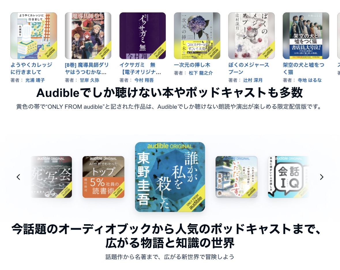 - Amazonが提供するオーディオブックサービス