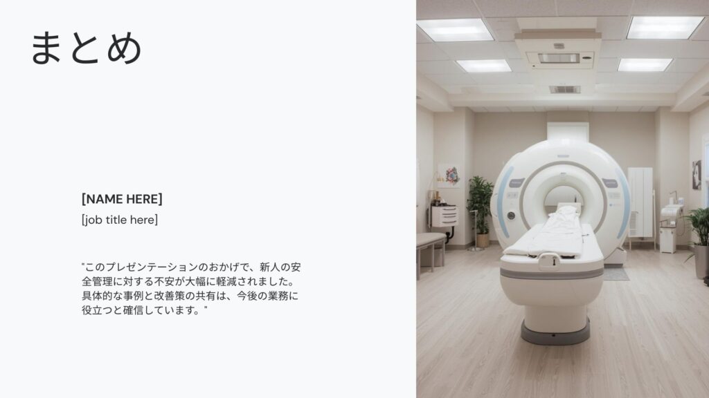 AIの実力を測るために、あえて僕の本職である「放射線技師」に関連する内容の資料生成という、マニアックなテーマをCanvaに投げてみました。