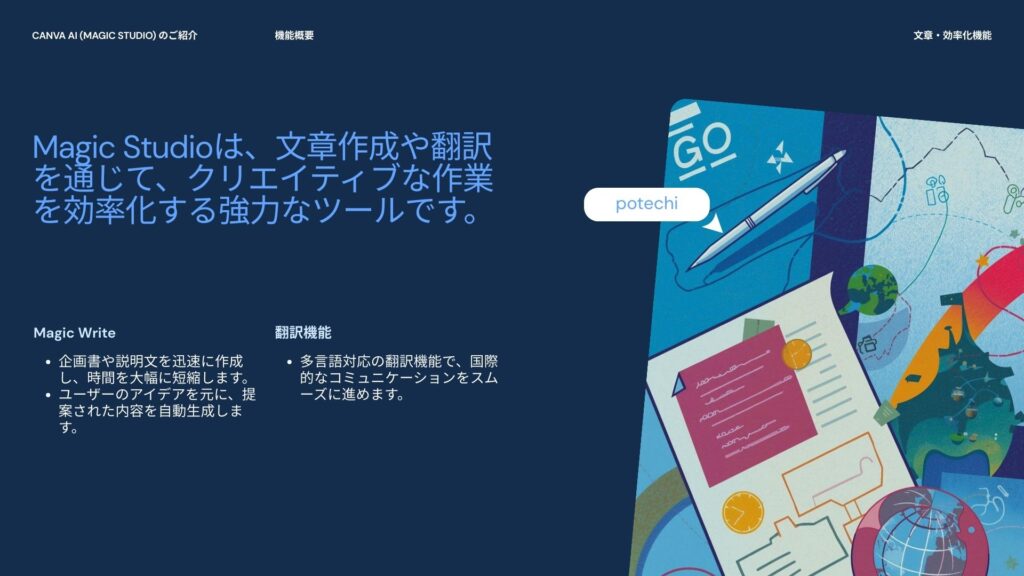 ここまでCanva AIを使ってみて、僕が魅力だと感じたポイントを3つお話しします。