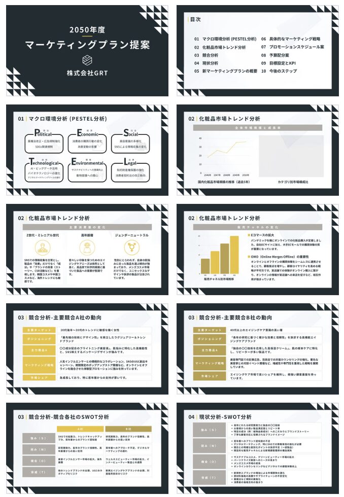 しかし、最初のプロンプトを入力して一瞬で、ここまでの資料が作れるとは凄すぎます。