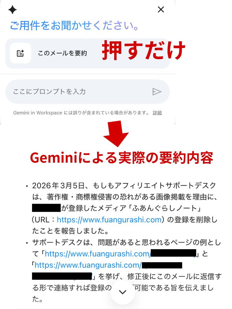 送られてきたメール上でこれを押すと、メールの内容を要約してくれます。
