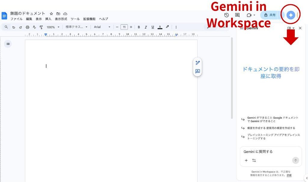GoogleドキュメントでもGeminiが使えます。