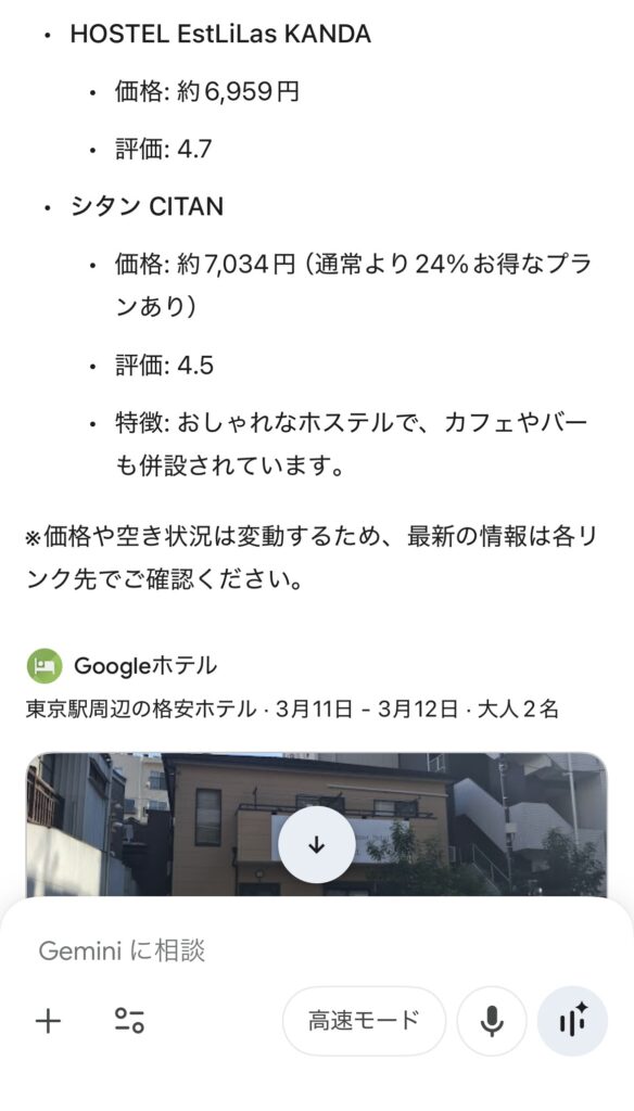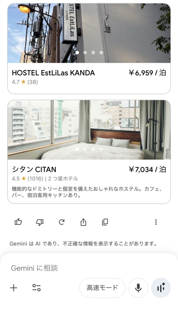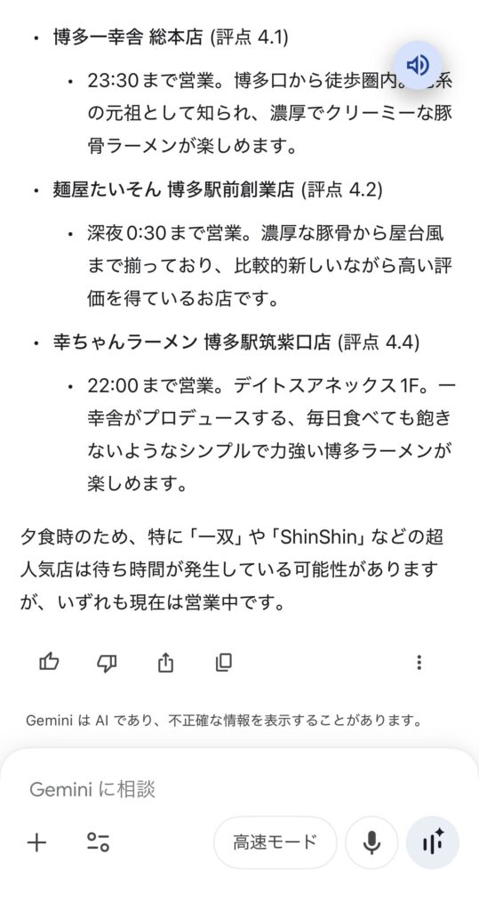 ChatGPTも非常に賢い検索機能(主にBingなど)を備えいてますが、GeminiはGoogle検索そのものが核になってます。