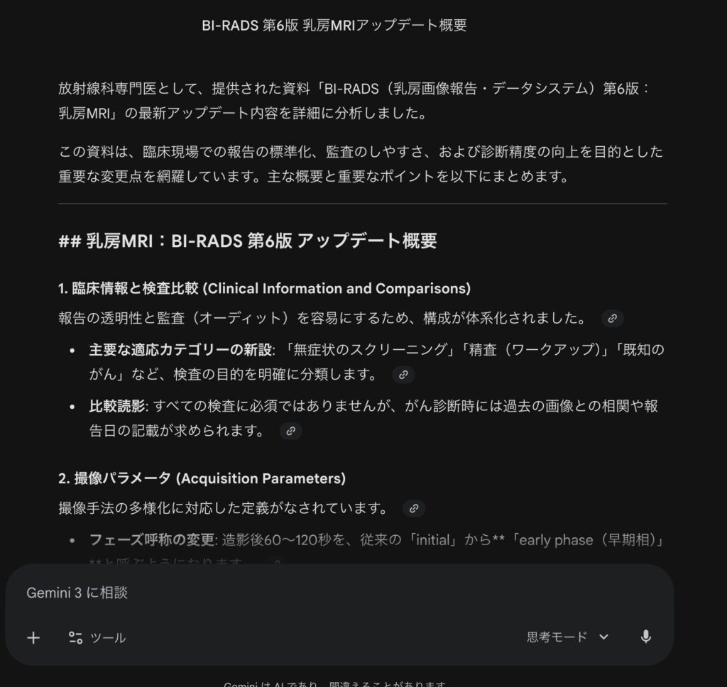 このようにGeminiは、数十ページのPDF資料や英論文を丸ごと読み込ませても数秒で分析でき、仕事や研究にも活かせるのでかなり重宝しています。